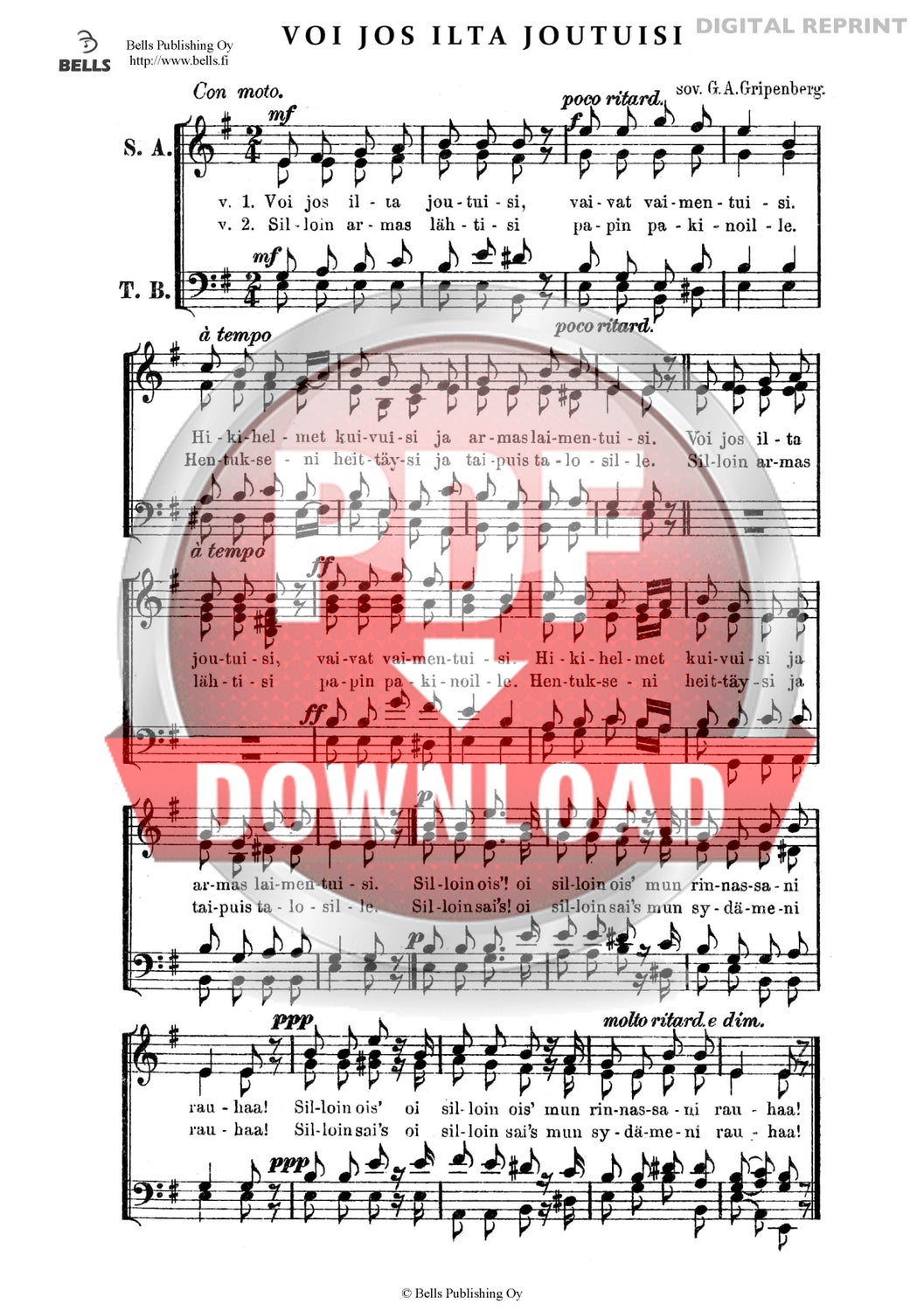 Trad. (sov. G. A. Gripenberg): Voi jos ilta joutuisi