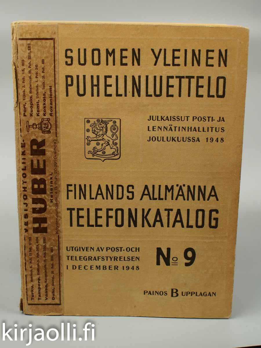 Suomen yleinen puhelinluettelo 9 B 1948- Finlands allmänna telefonkatalog 9